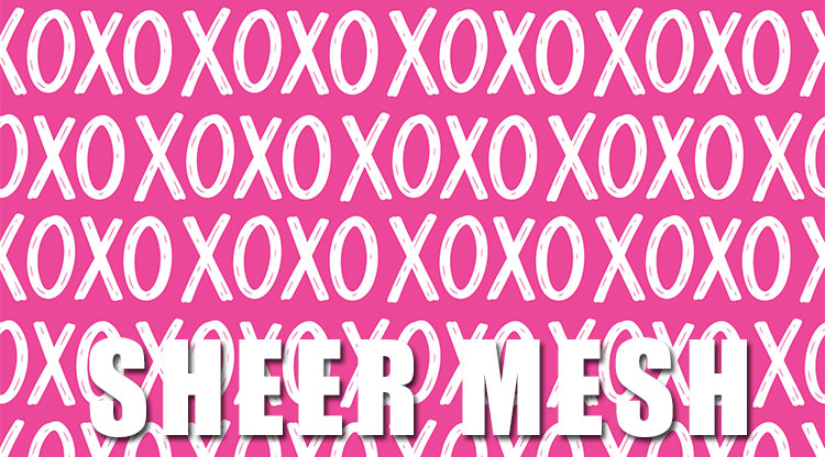 | Gorgeous XOXO Print on Sheer Mesh Material. For sizing information click here. |