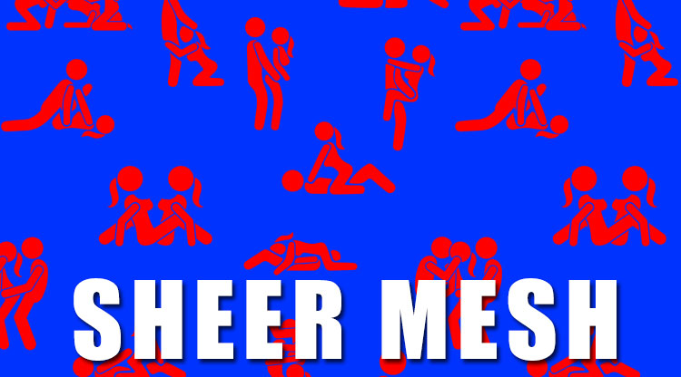 | Gorgeous Kamasutra - Blue-Red Print on Sheer SHEER MESH Material. For sizing information click here. |