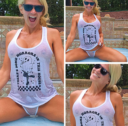 A tank so sexy and comfortable you will never want to take it off. Semi-sheer burnout tank with ½" ribbed banding at crew neck features a beautiful print. There's Some Horrors in this House. Color: White. Material Contents: 50% Cotton/50% Polyester. Made in the USA. Care Instructions: Wash cold. It is the nature of this fabric to pill after several washings. This is the desired look of the shirt. For sizing information click here. | |